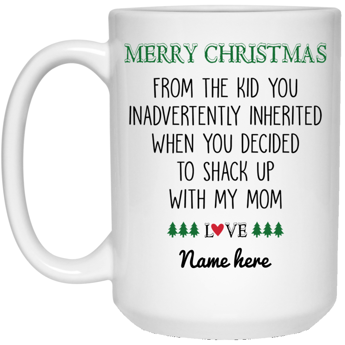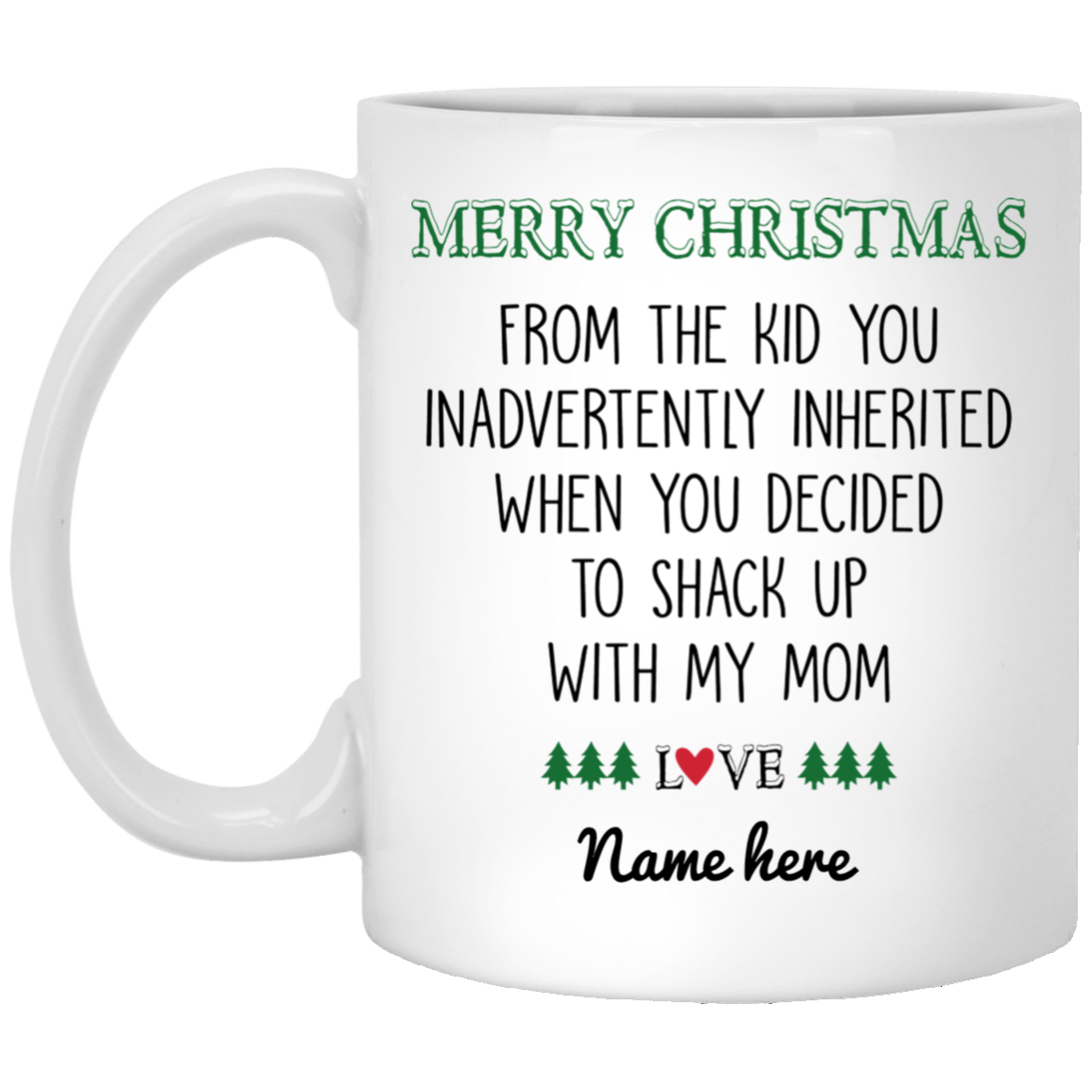 Merry Christmas from Inherited Kid Personalized Mug, Custom Gift for Step Dad, Step Father's Gift
